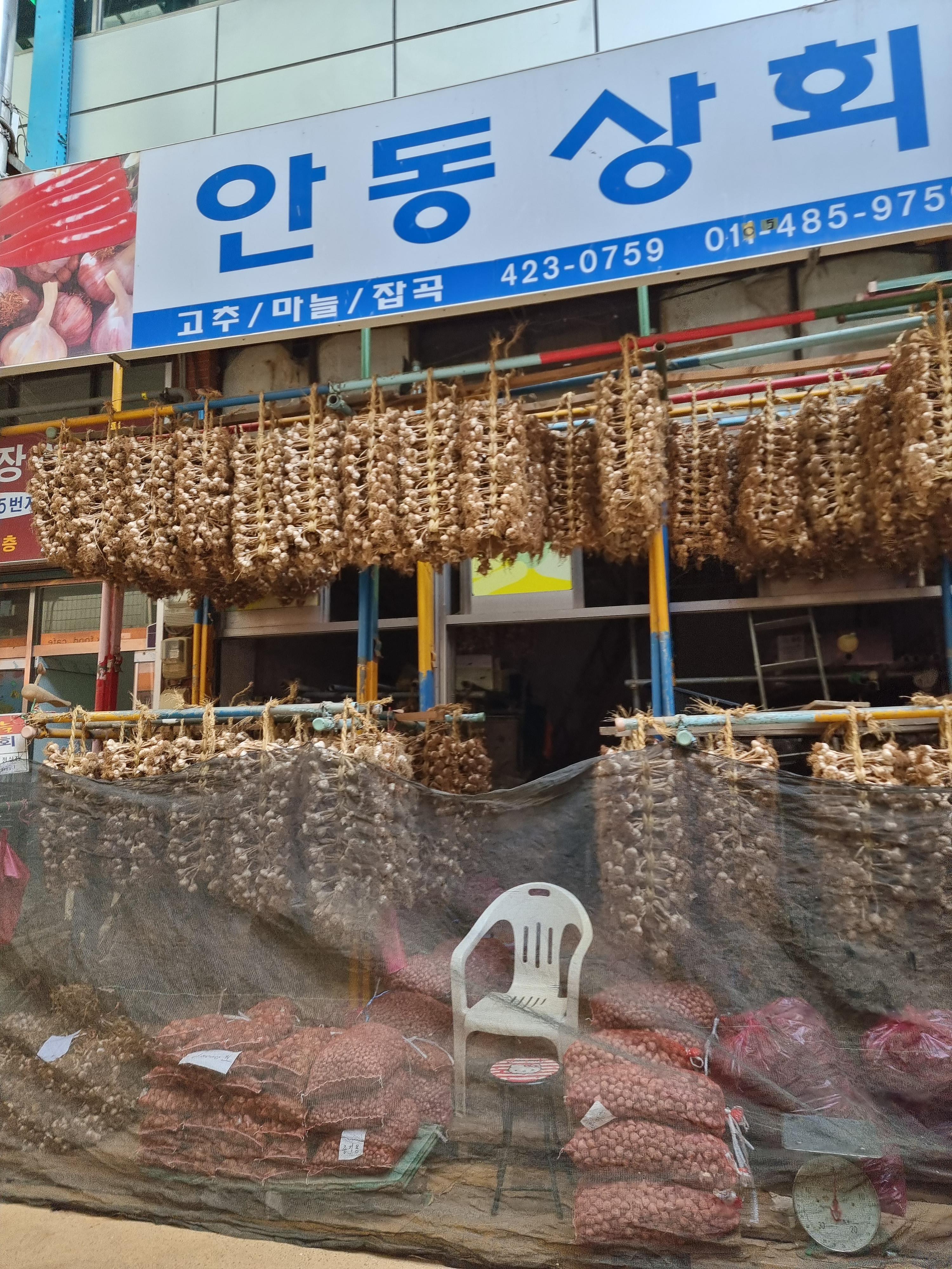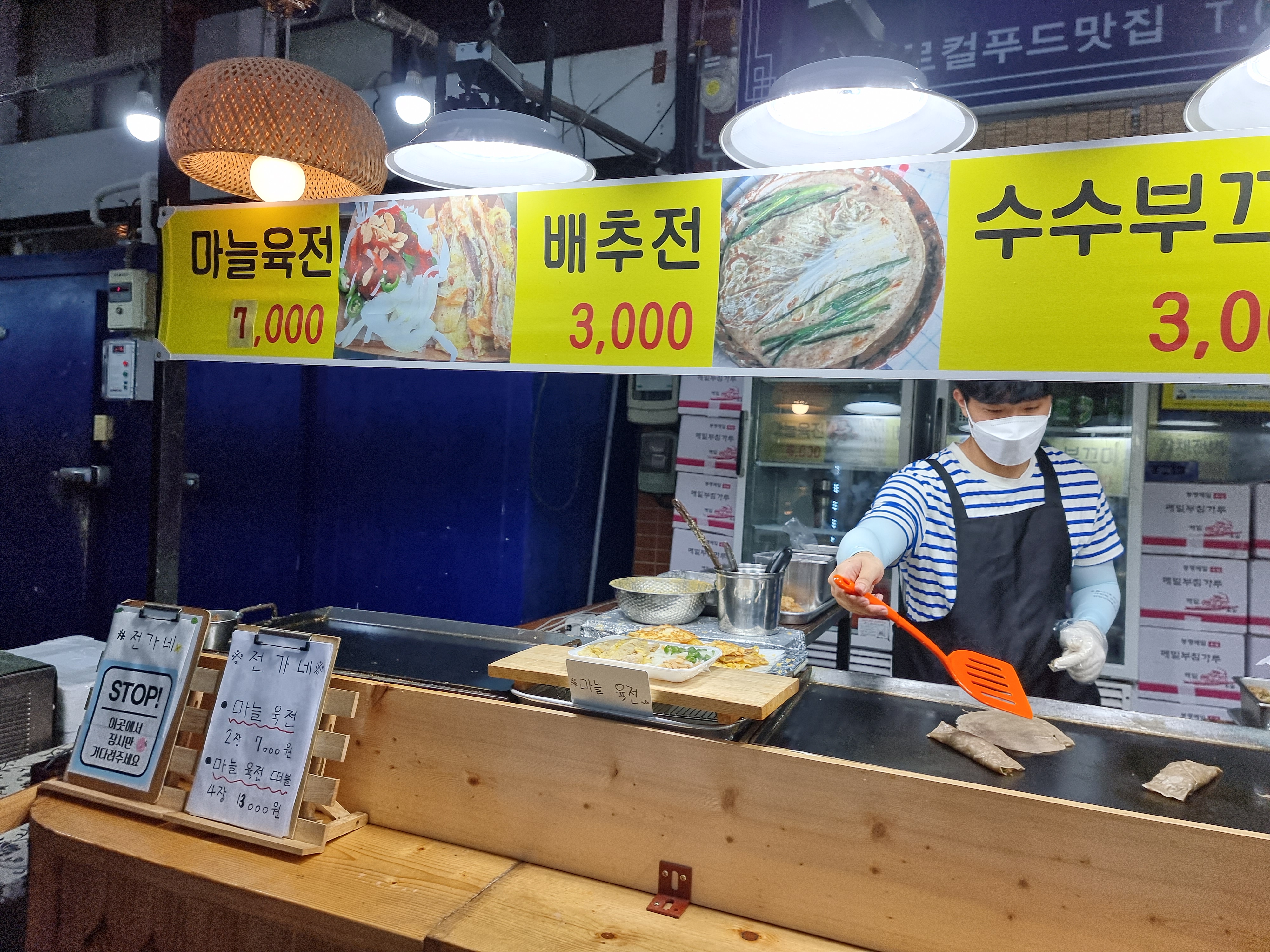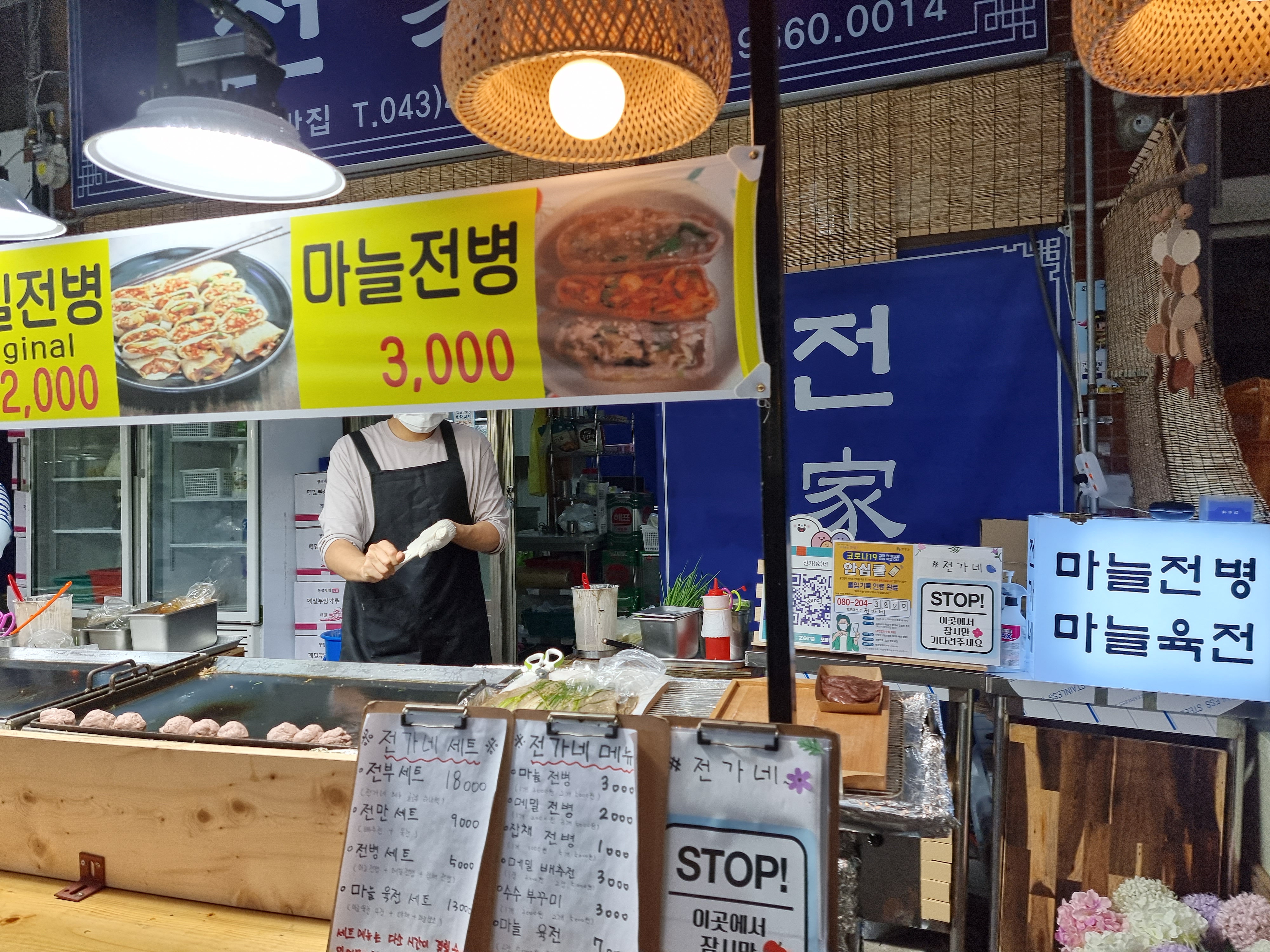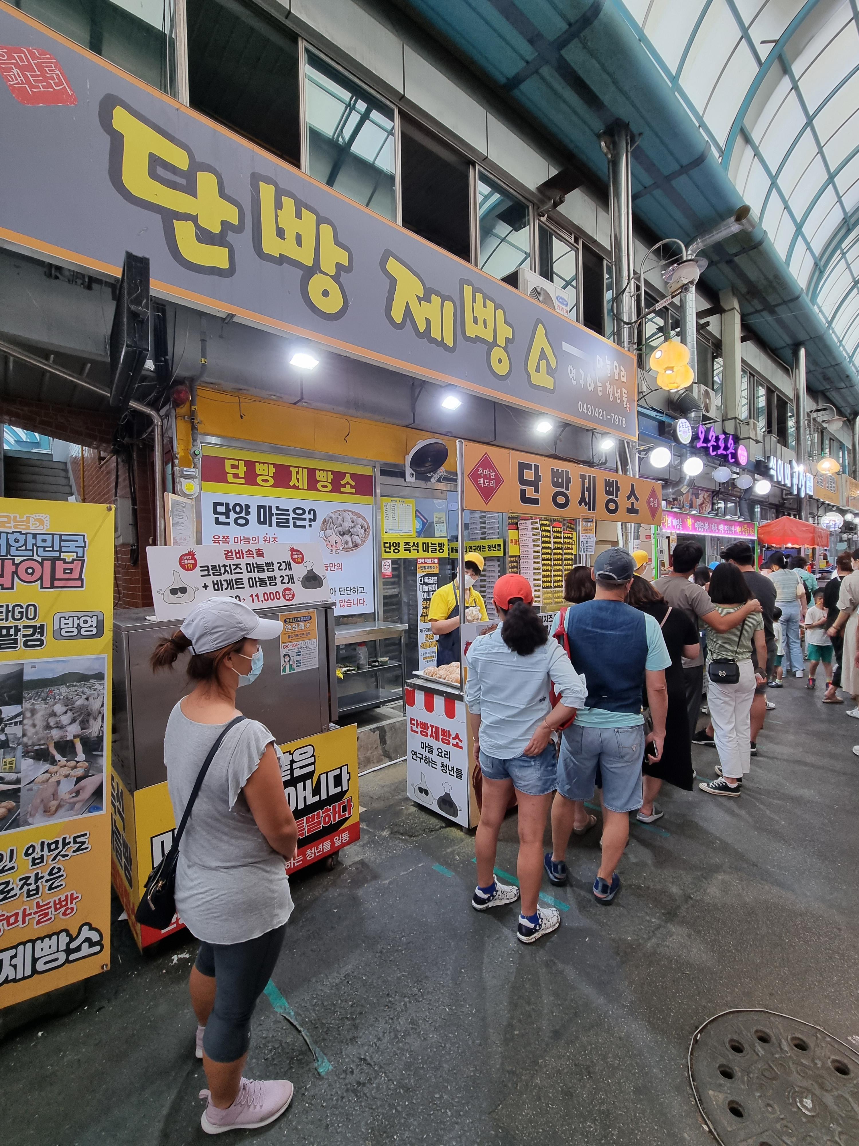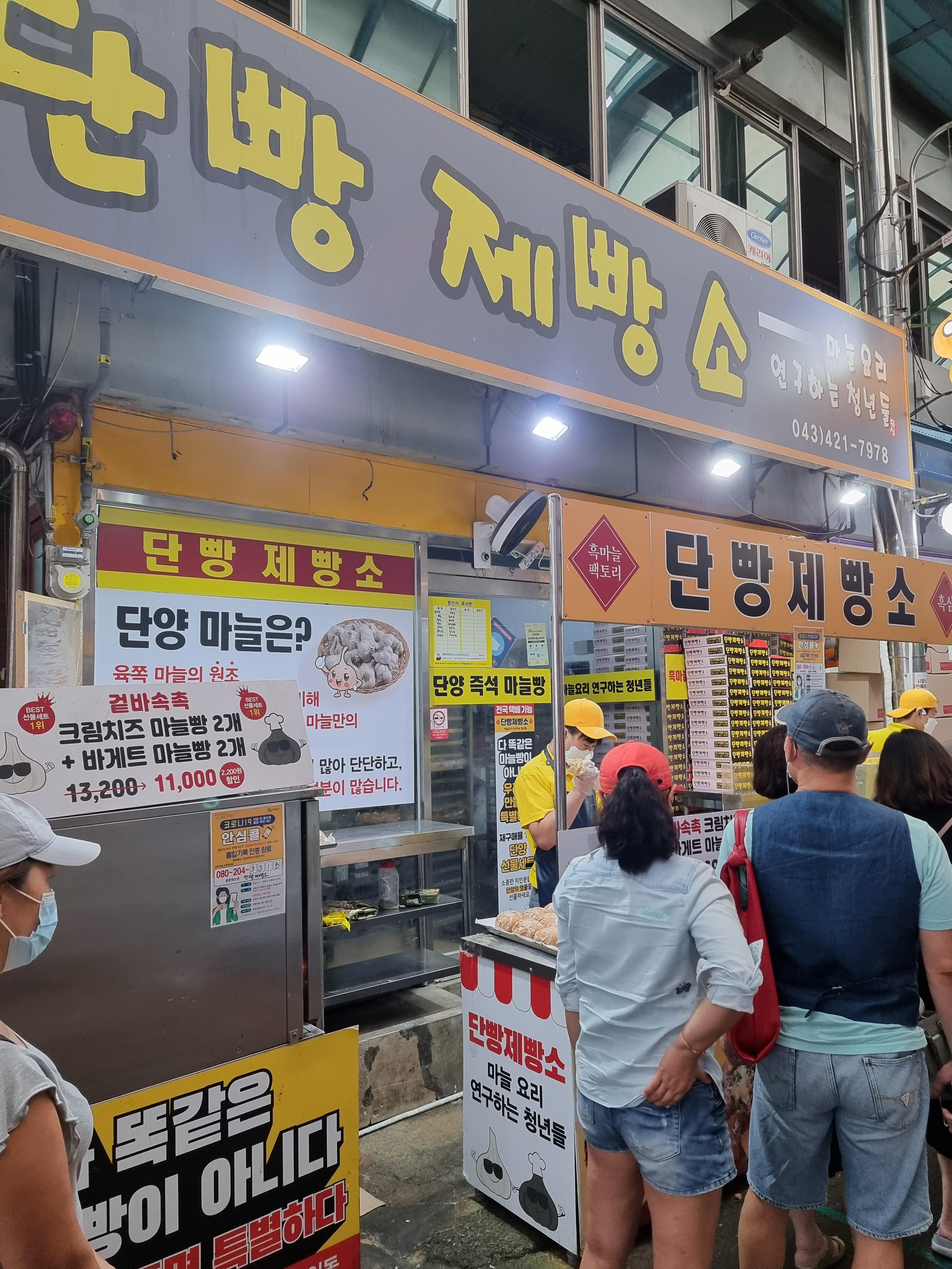 시장에 전체적으로 사람이 많지 않았는데, 줄 선 점포 발견!! 마늘 빵집이었는데 여기만 인산인해!! 30분은 선듯?