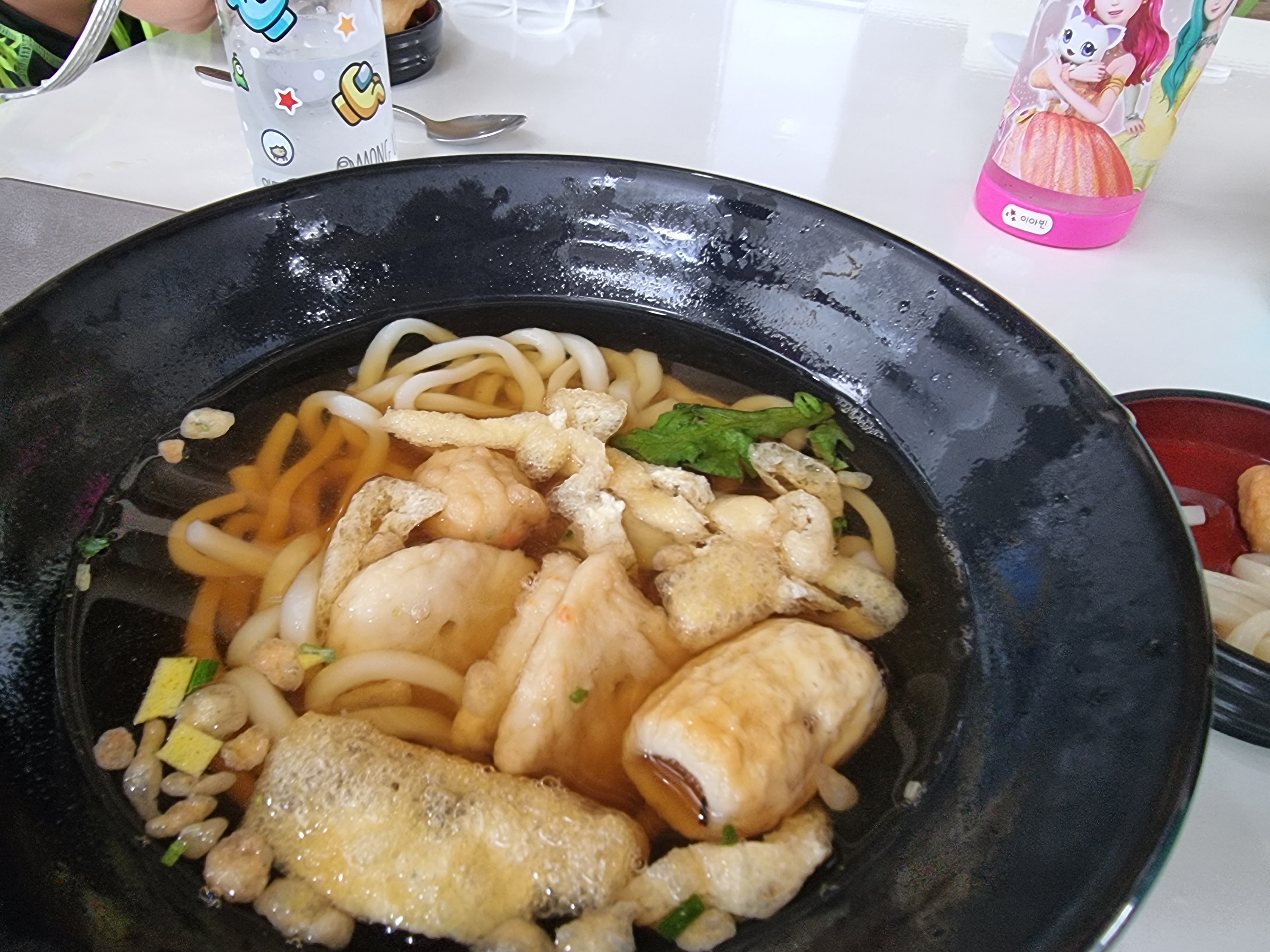식당 메뉴는 단촐하고 가성비는 별로~ 차라리 비싸고 좋으면 나으련만 ㅎㅎㅎ 12000원 정도하는 돈까스, 어묵우동, 자장면, 떡볶이 주문!!